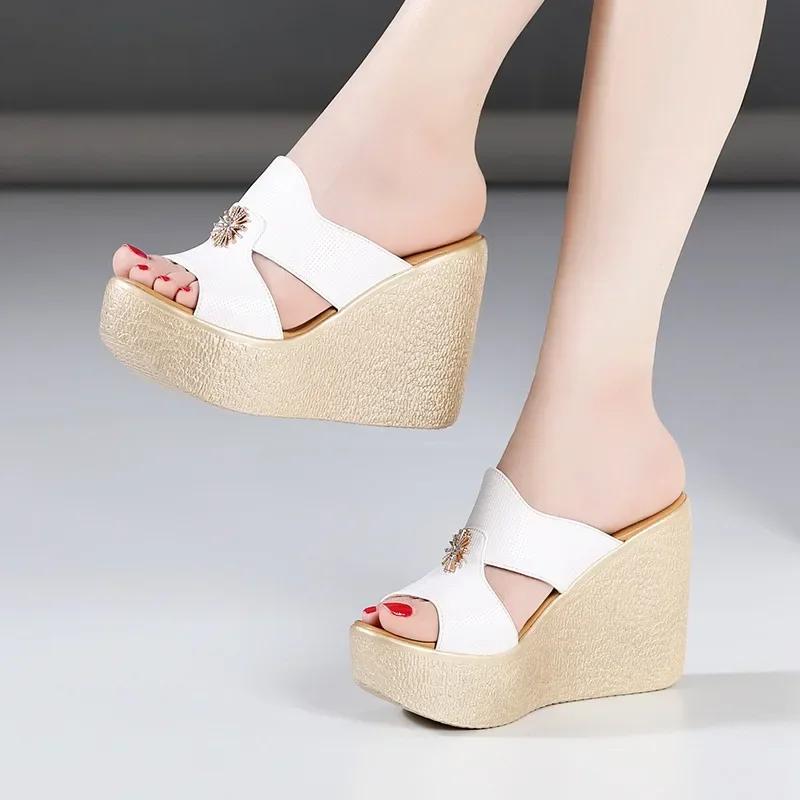 8см 11см Маленький размер 32-43 Туфли из мягкой кожи Платформа Клинья Шлепанцы Лето 2025 Женские туфли на высоком каблуке Слайды для офиса Мама Модель 43