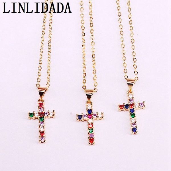8шт золото заполнено мода радуга cz микро проложить мульти красочные цирконий крест ювелирные изделия подвески ожерелья, Silver