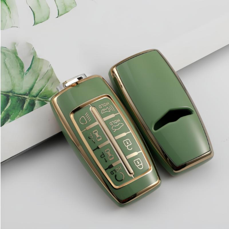 8 Кнопок ТПУ Чехол для Ключа Автомобиля Для Hyundai Genesis GV70 GV80 GV90 2020 2021 2022 Корпус Брелок Держатель Кольцо Защитник Брелок зелёный