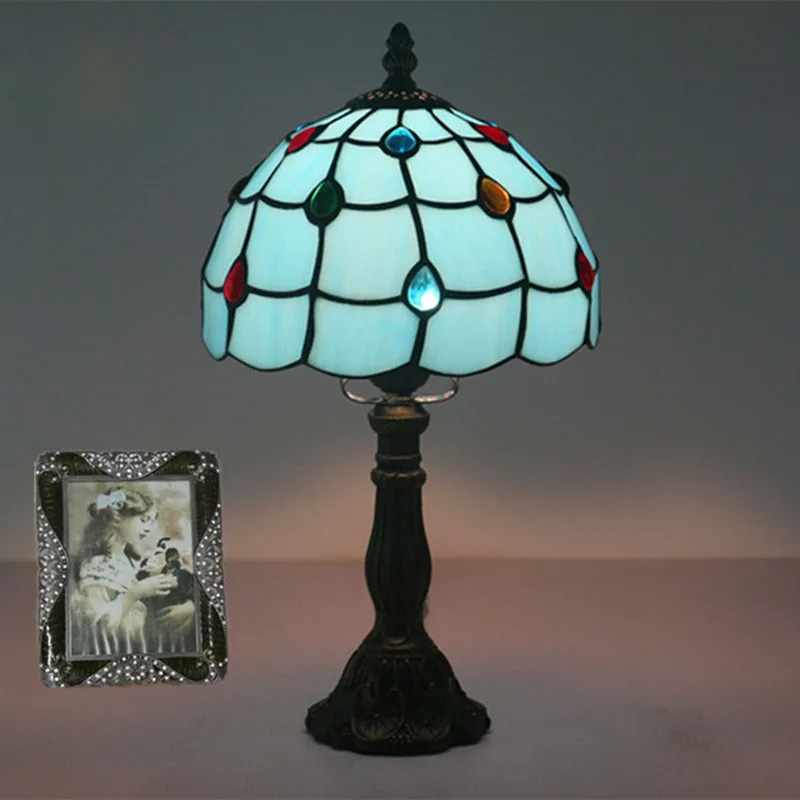 8-дюймовая настольная лампа из Средиземноморского синего стекла, модная Милая настольная прикроватная лампа для спальни, европейская ретро настольная лампа