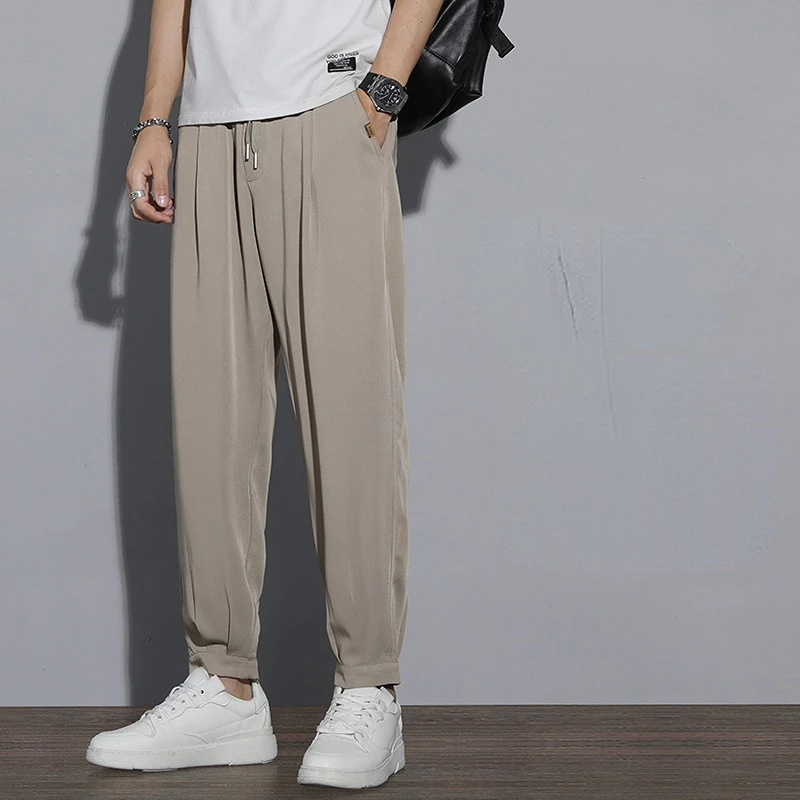 Спортивные брюки мужские, однотонные повседневные штаны, Модные свободные широкие брюки в Корейском стиле, с эластичным поясом, весна-осень
