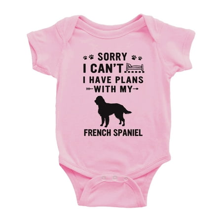 Sorry I Can t I Have Plans With My French Spaniel Love Pet Dog Cute Baby Romper (Pink 12-18 Months)