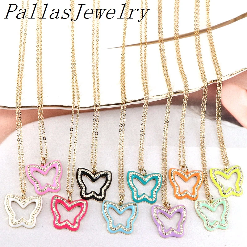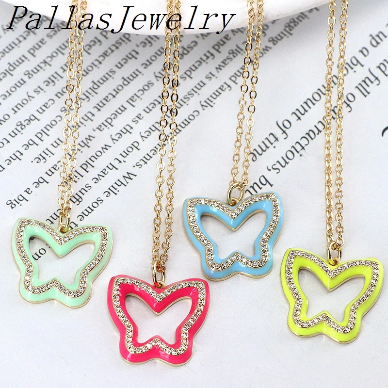 8 шт. изящный эмаль CZ кулон в форме бабочки для женщин вечерние заявление Шарм все Цвета Стиль модное ожерелье, ювелирные изделия в качестве ...