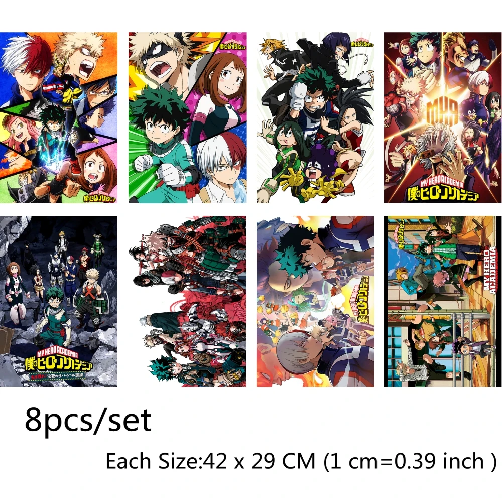 8 шт./компл. аниме «Моя геройская Академия», плакаты, наклейки, украшение для спальни, аниме, для влюбленных, подарок на день рождения, размер ...