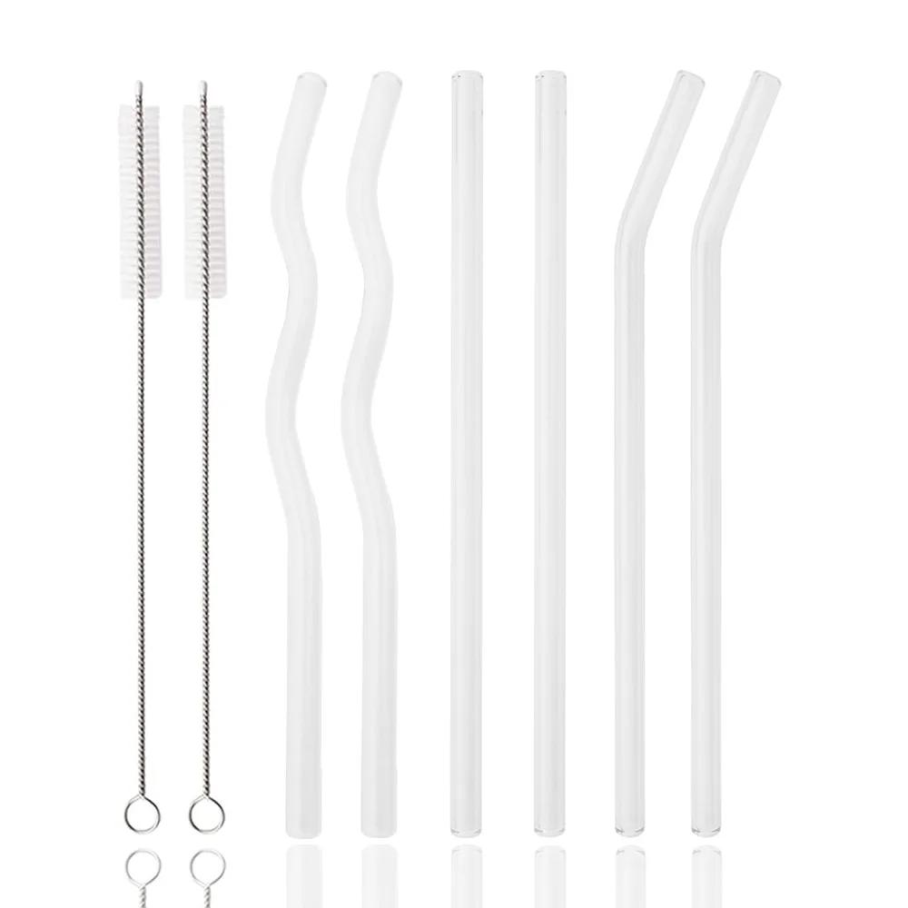 8 шт./набор стеклянных трубочек волнистые многоразовые питьевые трубочки красочные экологичные трубочки для напитков кофе молока чая трубочки барная посуда прозрачный
