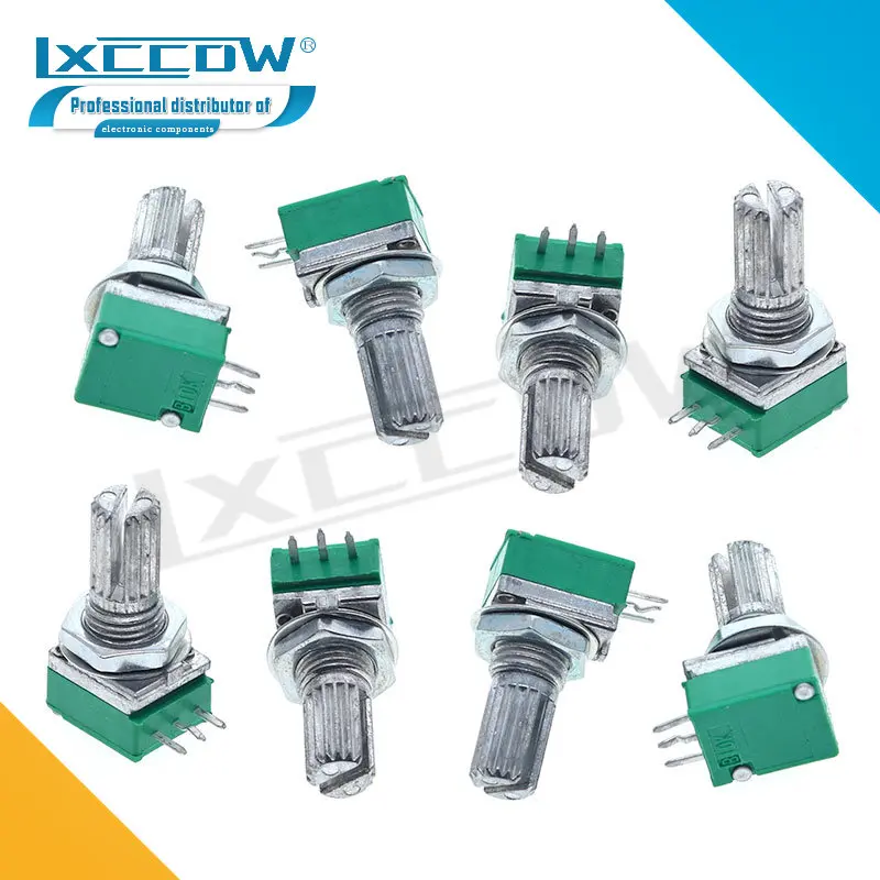 50pcs RK097N 5K 10K 20K 50K 100K 500K B5K with a switch audio 3pin shaft 15mm amplifier sealing potentiometer