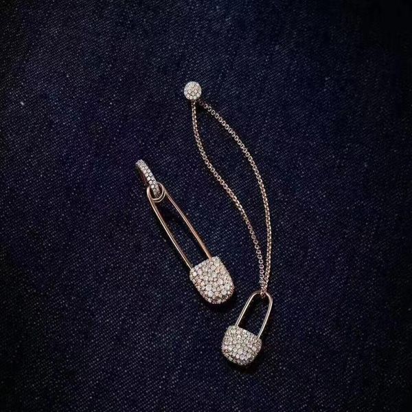 fashion 925 sterling silver cubic zirconia long earrings safety pin stud earring asymmetric5057060