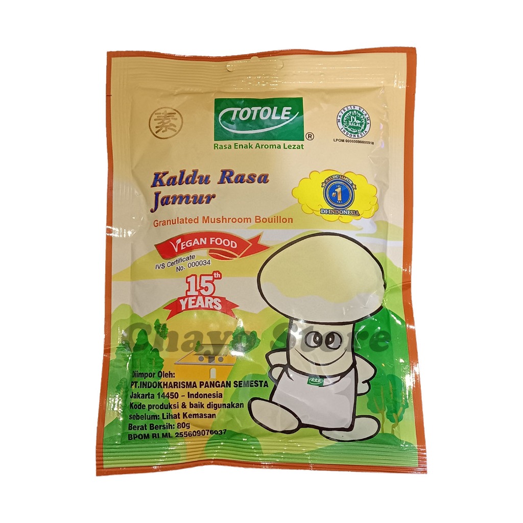 Kaldu Kaldu Jamur TOTOLE berbahan baku jamur, sehingga sehat alami tanpa kandungan bahan kimia berbahaya bagi tubuh. Kaldu jamur TOTOLE berbentuk serbuk untuk membuat masakan anda menjadi lebih lezat dan sehat, sehingga aman untuk buah hati anda. Telah terbukti & disukai oleh ibu rumah tangga & para ahli masak.