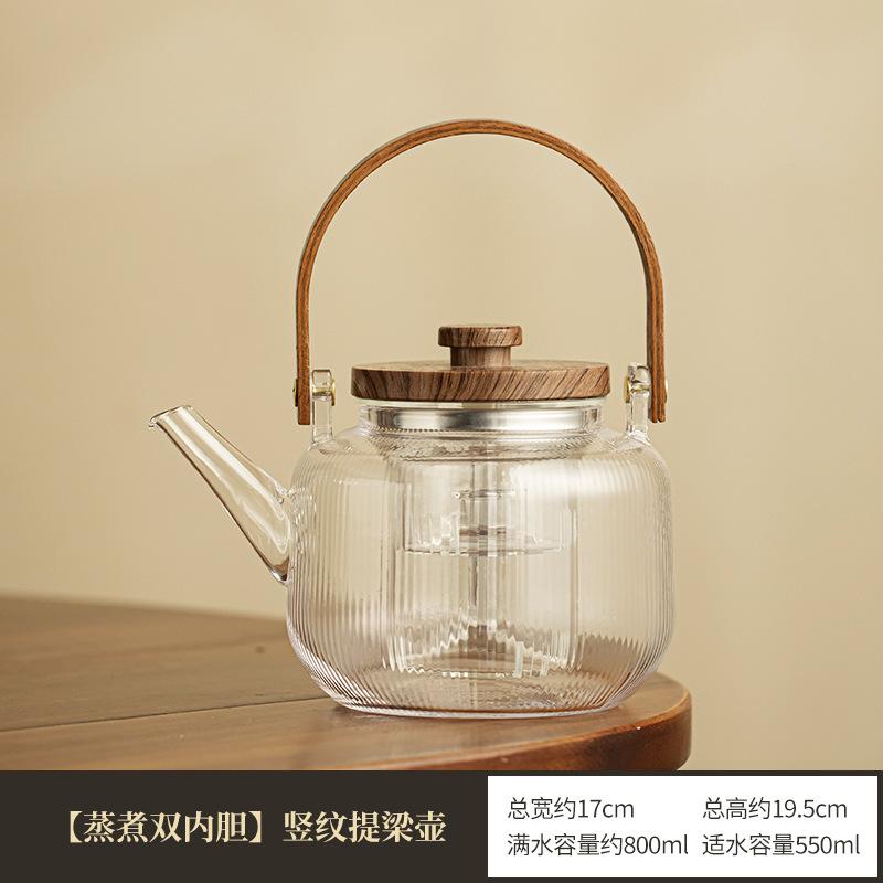 800 мл Прозрачный Стеклянный Чайник с Бамбуковой Ручкой-Петлей Вертикальный Узор Паровой Чайник Чайник для Кипячения Воды Чайник Китайская Чайная Посуда