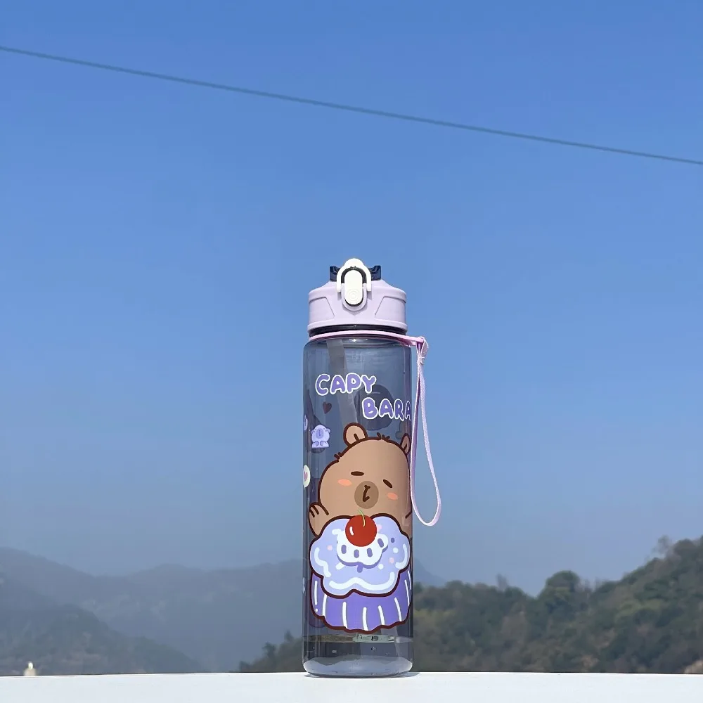 800 мл бутылки для воды с капибарой, милая мультяшная прозрачная пластиковая чашка с плечевым ремнем, соломенная чашка, бутылка для питья капибары