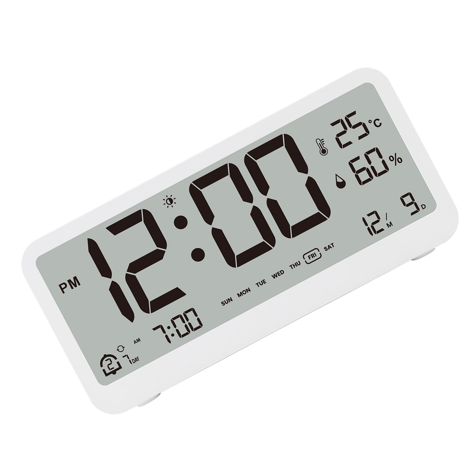 8001 EN Multifunctional Digital Clock LED Brightness Adjustable Temperature Humidity Displaying Alarm Clock with Dual белый