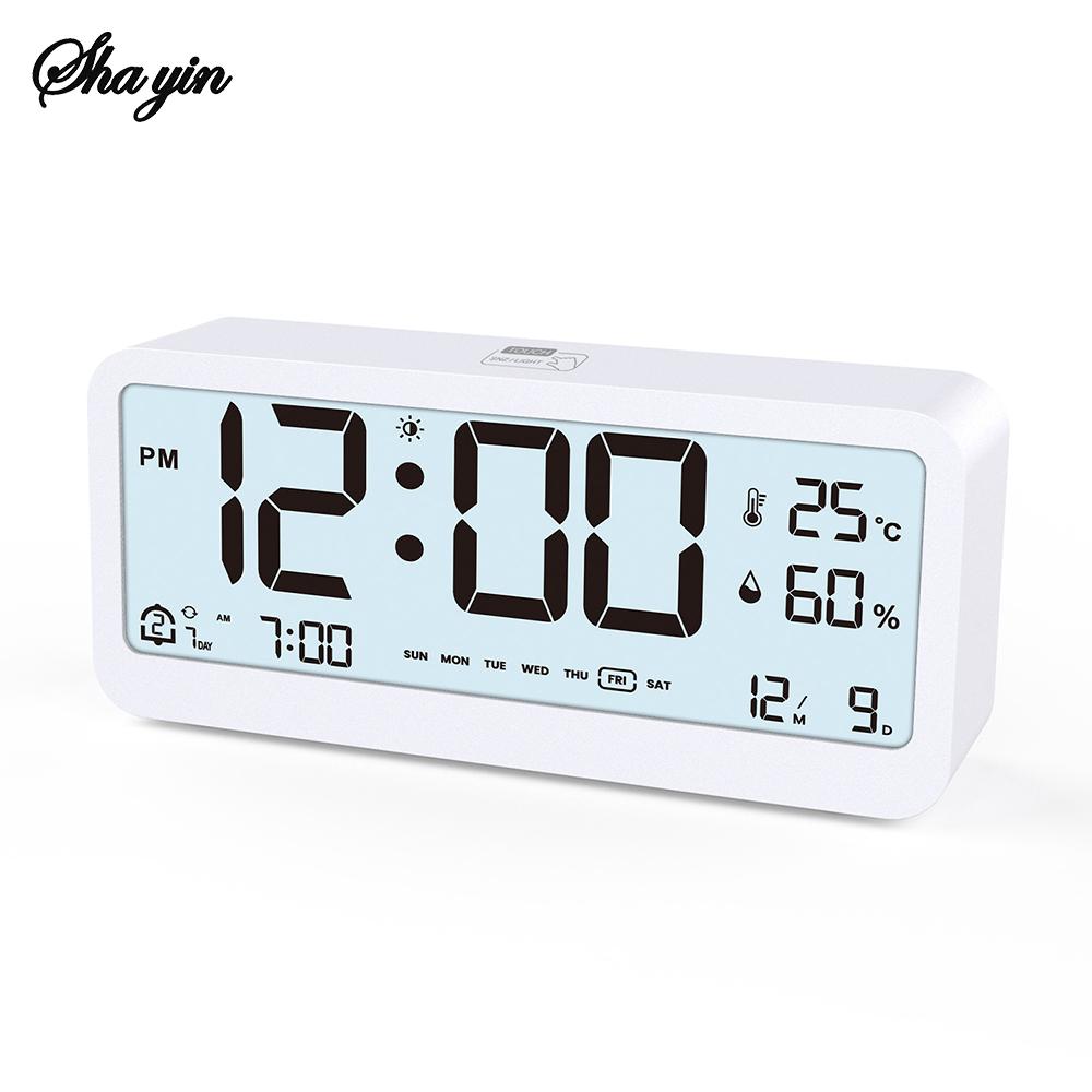 8001-EN Multifunctional Digital Clock LED Brightness Adjustable Temperature Humidity Displaying Alarm Clock with Dual Modes белый