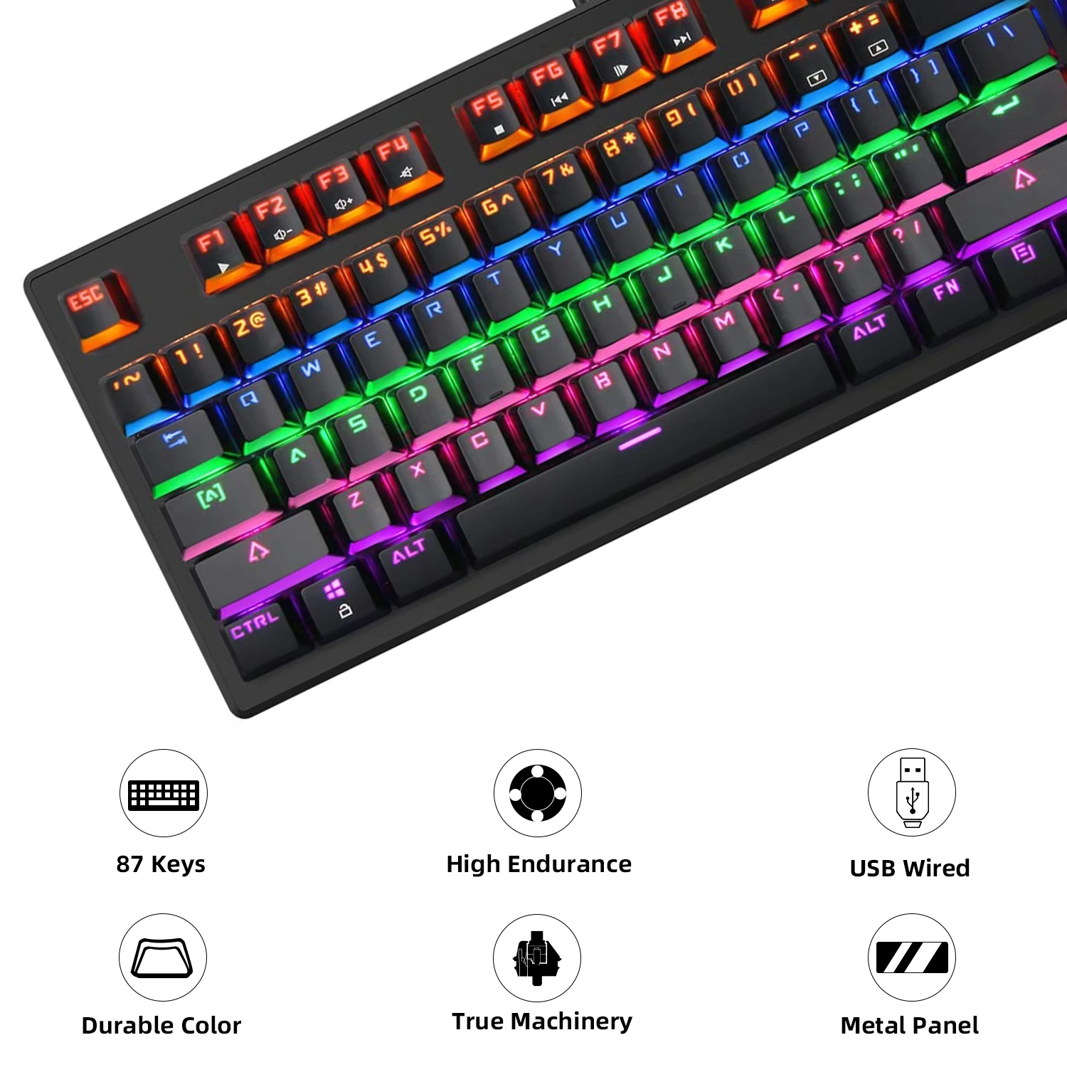 84-клавишная механическая клавиатура RGB, водонепроницаемая портативная игровая клавиатура с подсветкой, эргономичная проводная USB красочная клавиатура для ПК, ноутбука