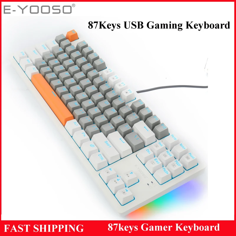 87 клавиш USB RGB Проводная игровая клавиатура Механическая Эргономичная перезаряжаемая Компактная оптическая клавиатура с возможностью горячей замены Коричневый переключатель с защитой от ореолов DIY Gamer Keyboard Ki