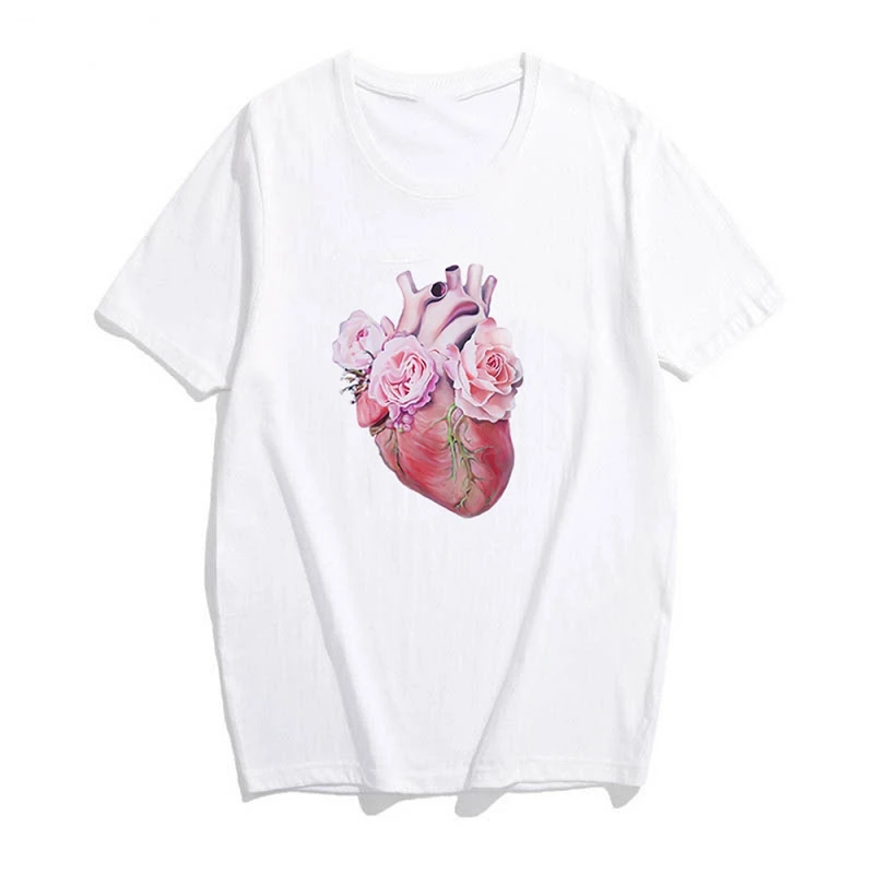 Футболка женская с буквами алфавита и цветочным принтом, повседневный белый топ в стиле Харадзюку, на лето