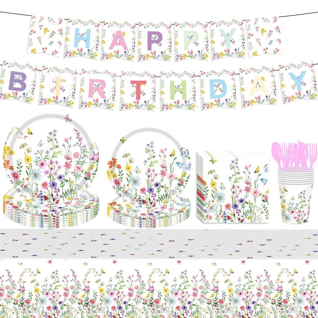 8Guests Весенний цветок Одноразовая посуда Бабочки Цветы Тарелки Салфетки Чашки Весенний цветок Счастливая девушка День рождения Товары для вечеринки