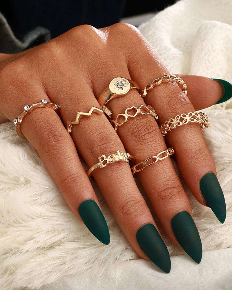 8PCS/Set Letter Heart Rhinestone Decor Ring, Gold