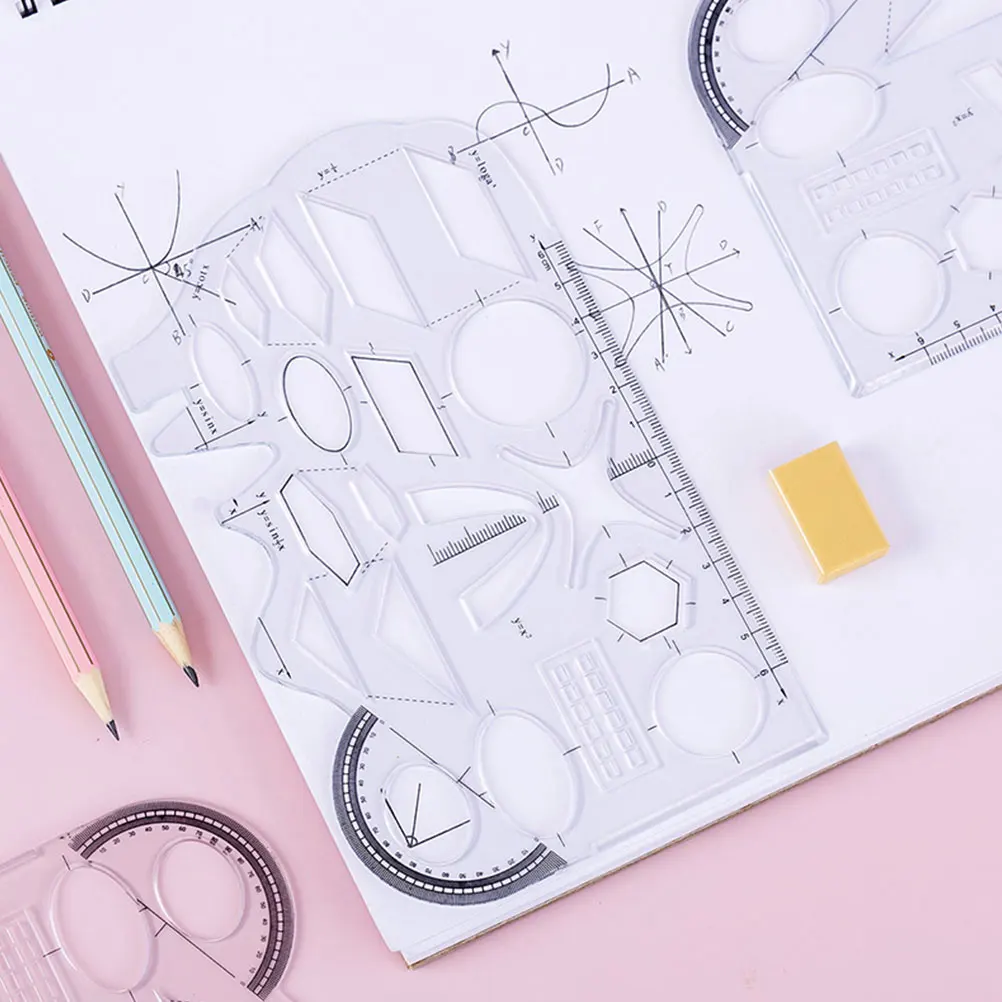 8Pcs Function Plotting Ruler Set Multifunction Geometric Templates Drawing Stencils Drafting Tools School Drawing Supplies