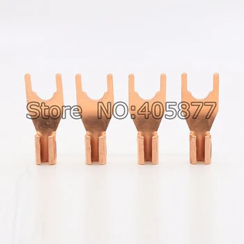 8pcs Pure Red Copper Spade Plug Speaker Cable Spade Connector Terminal Plug