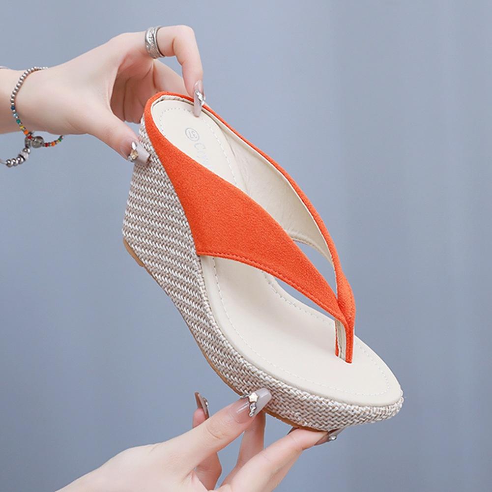 9см Богемные пляжные сандалии Толстая подошва Каблук Шлепанцы Свитер Сладости Тапочки Тапочки Водонепроницаемые Платформа Тапочки 42