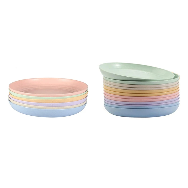 9-дюймовые легкие тарелки из пшеничной соломы, Пластиковые Многоразовые тарелки, наборы посуды разных цветов, можно мыть в посудомоечной ма...