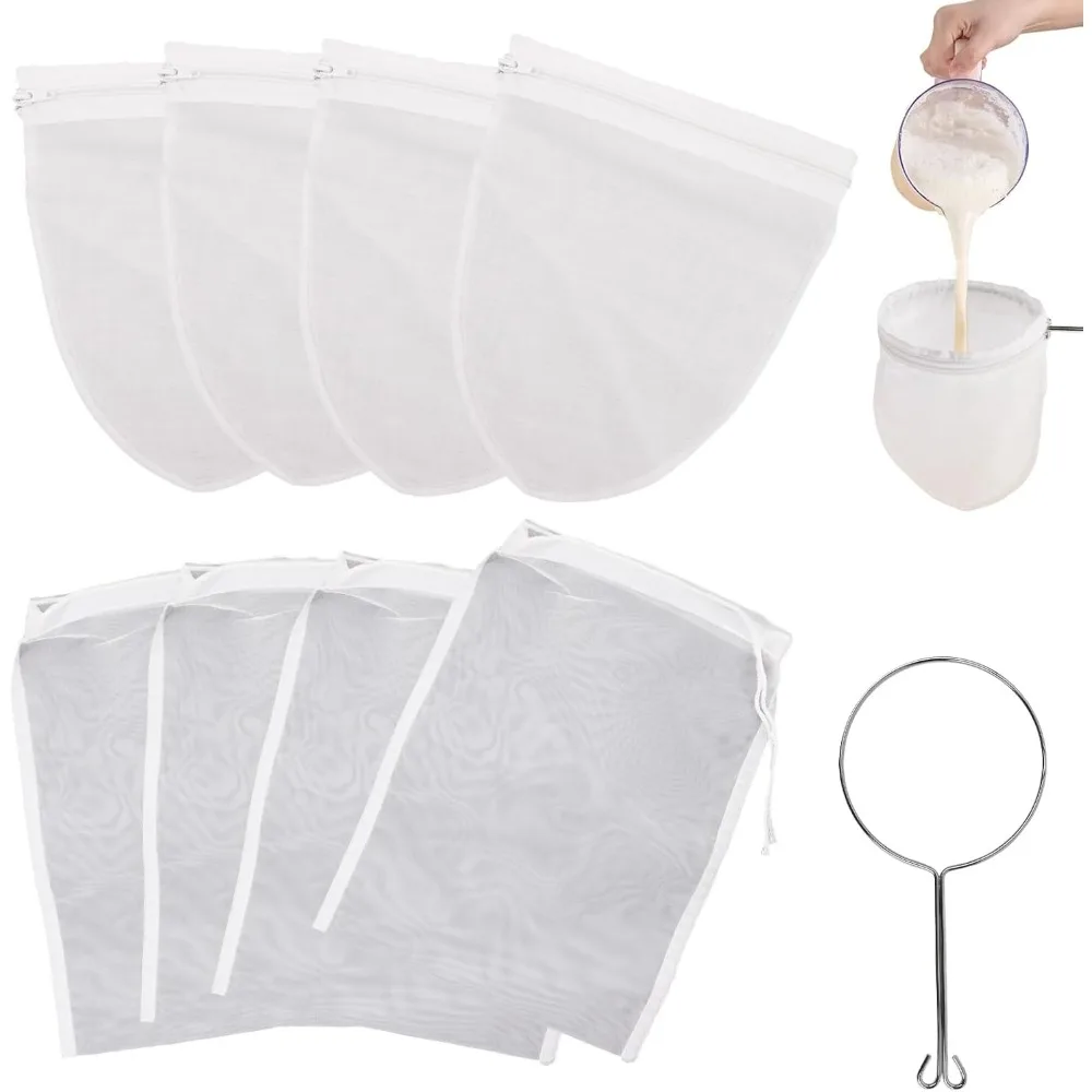 9-местные сетчатые сетчатые мешки с ручкой из нержавеющей стали, многоразовый мешок для орехового молока, фильтр-мешок для просеивания сыра Fru