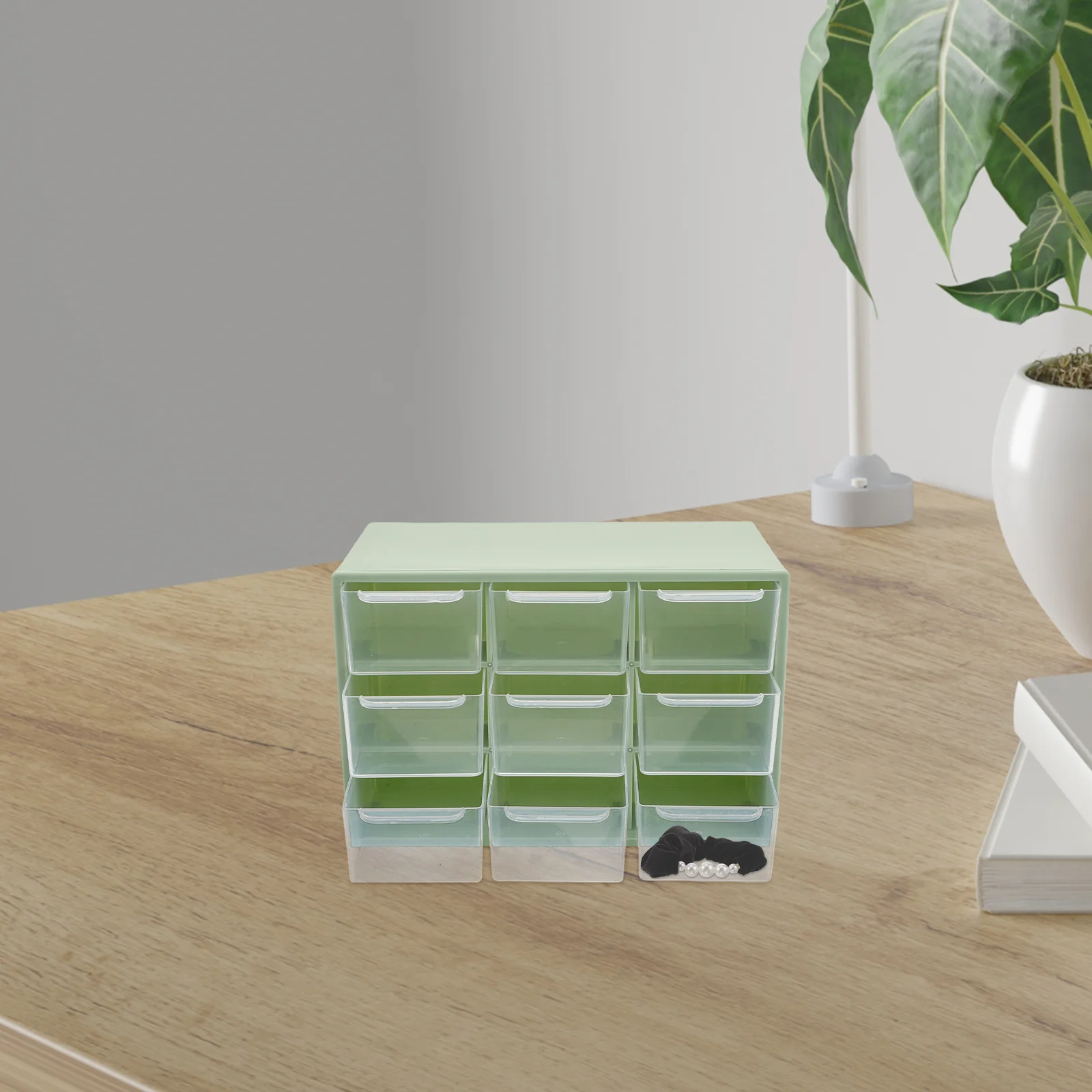 9 Drawer Jewelry Organizer Box Green Stackable Desktop Storage Solution For Accessories, Makeup, Craft, Earring, Watch, Bead,