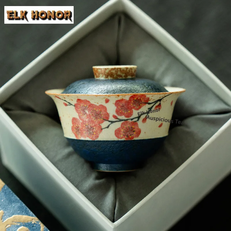 90 мл Чистая ручная роспись с цветком сливы Гайвань, винтажная чайная варенья, чайная чаша с крышкой, набор чайника, крышка, миска, китайский чайный сервиз, ремесло