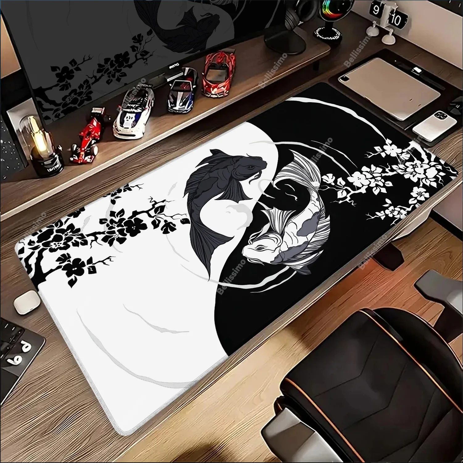 900x400 Инь-Ян Рыба Коврик Для Мыши Черно-Белый Сакура Коврик Для Ноутбука Настольный Коврик Компания ПК Игровые Аксессуары Геймер Офис Дома Настольные Коврики