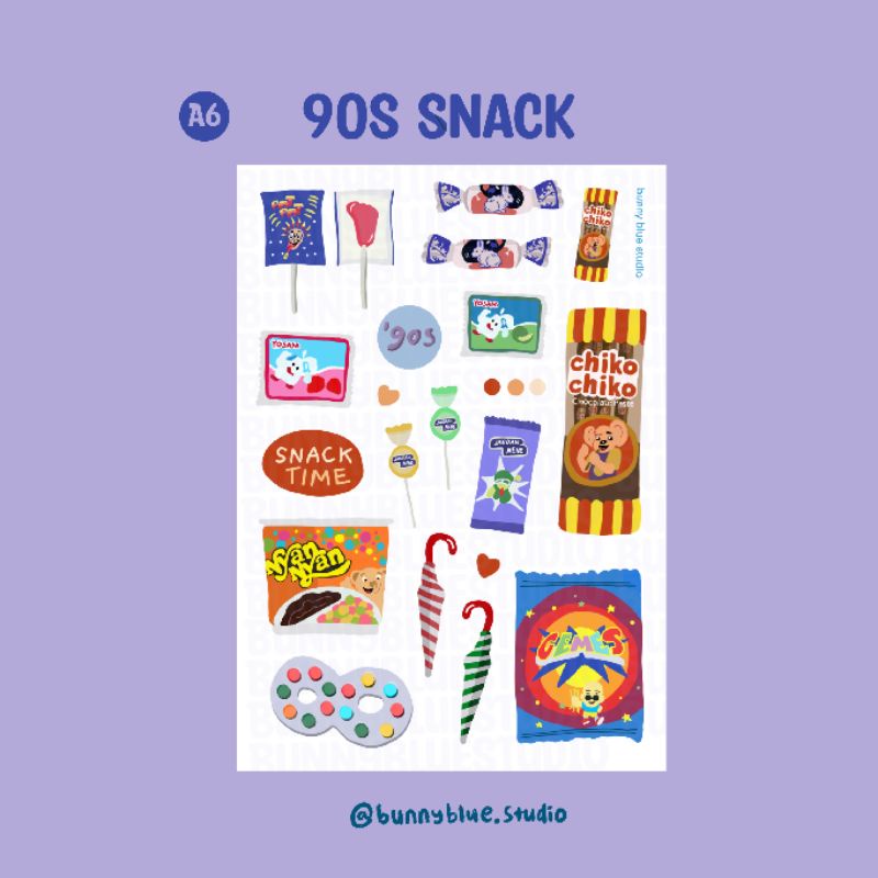 Stiker Snack yang bikin kamu nostalgia sama makanan ringan tahun 90an. Stikernya tahan air jadi kamu bisa tempel di mana aja!