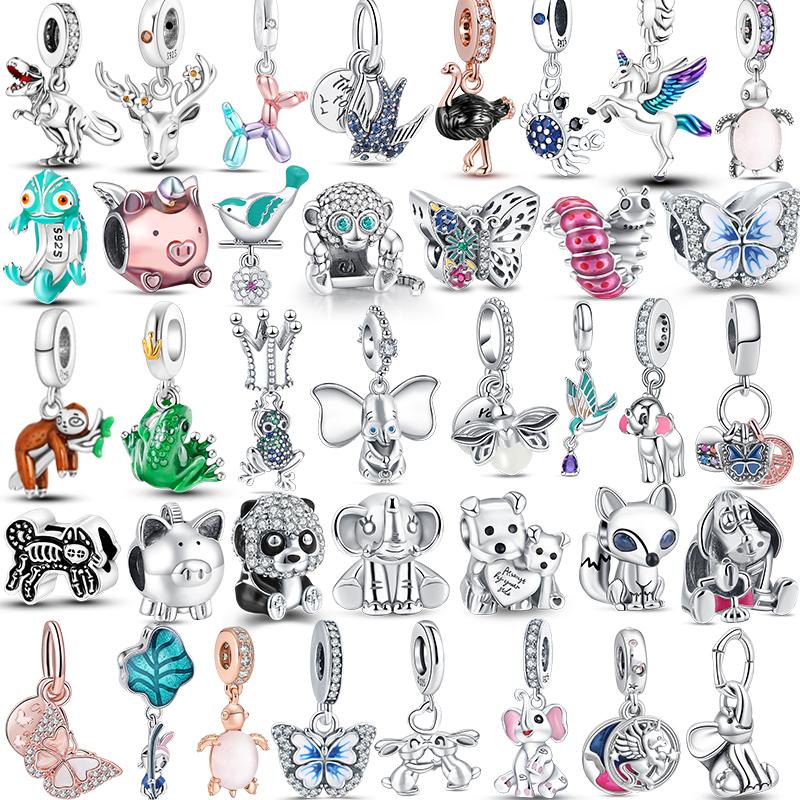 925 Серебро Ласточка Птица Гусеница Лягушка Светлячок Слон Обезьяна Висячие Fit Оригинальные Подвески Браслет Ювелирные Изделия Подарок Diy