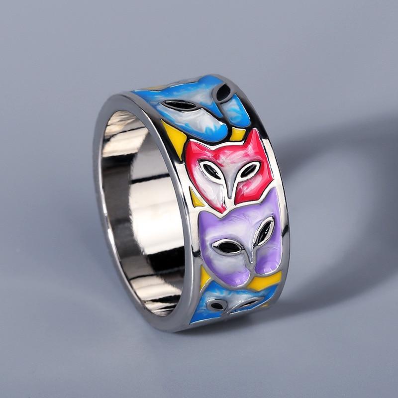 925 Серебро Творческая Эпоксидная Эмаль Цвет Головы Кошки Животное Женское Кольцо Ювелирные Изделия Обручальное Кольцо Свадебные Украшения Для Женщин