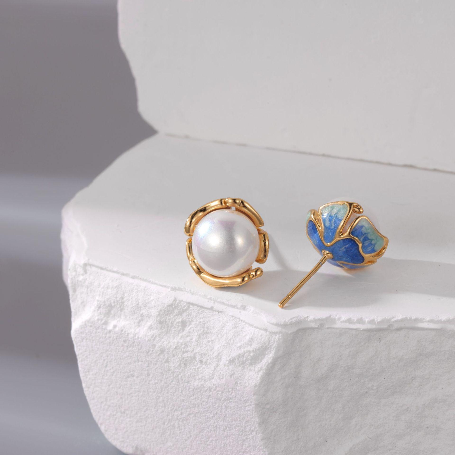 925 Серебряная игла Продвинутая эмаль серьги Старинный стиль Натуральный пресноводный жемчуг женские