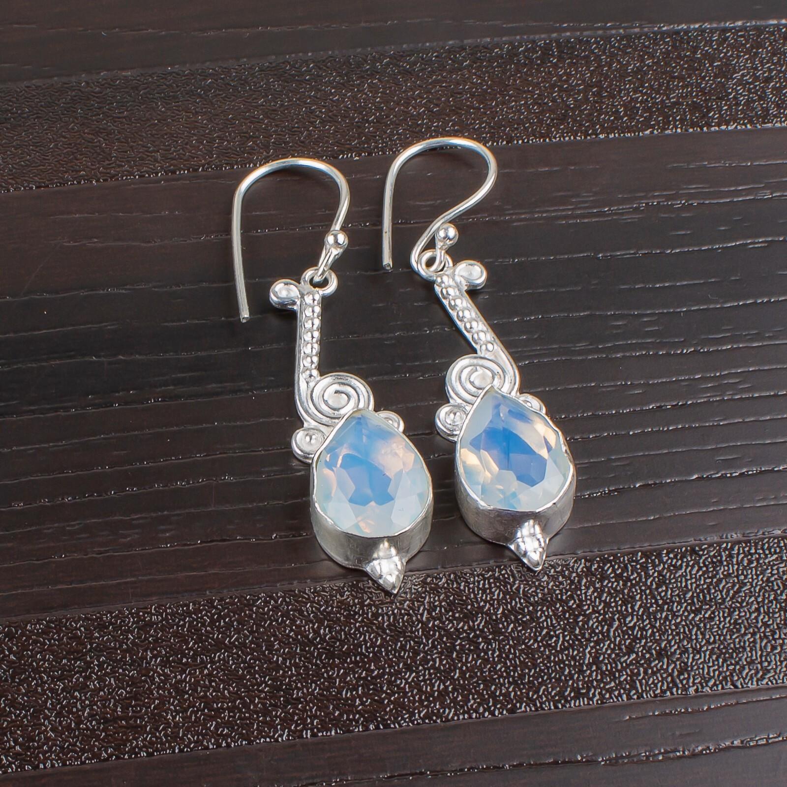 925 Стерлинговое Серебро Молочный Опал Драгоценный Камень Модные Ювелирные Изделия Серьги Для Свадьбы EE-37-15