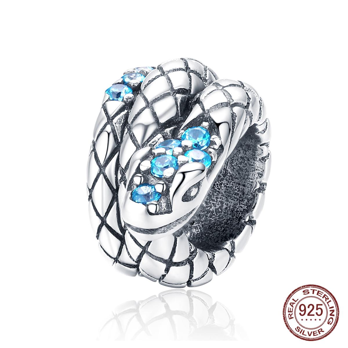 925 Стерлинг Серебряные ювелирные изделия Змея Шарм для браслета Ретро Стиль Металлический шарик изобразительных ювелирных изделий
