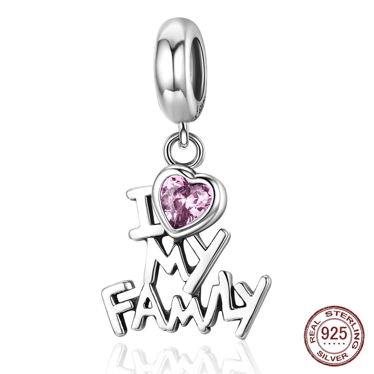 925 Стерлинг Серебряный Я люблю мое семейное сердце Dangle прелести подходят женщины Шарм Браслеты ювелирные изделия Семейный подарок