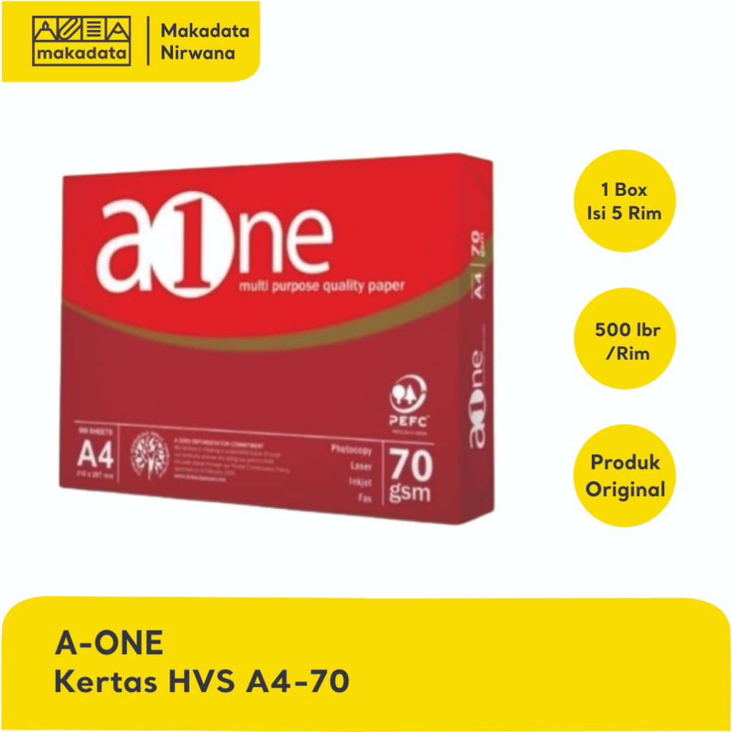 • HVS A-ONE adalah kertas fotocopy putih, berkualitas tinggi untuk penggunaan harian dan dapat digunakan untuk keperluan Print dan Fotocopy