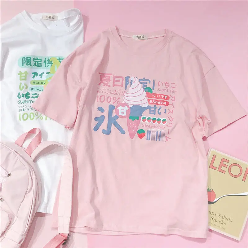 Японская Лолита хлопковая Футболка с мороженым, графичный топ для девочек школьная одежда, красивая одежда, симпатичная одежда, свободные т...