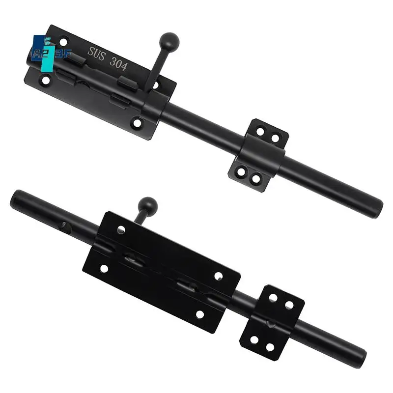 A23F-Сверхмощная защелка для ворот скользящего болта с навесным замком, горизонтальная защелка для болта, фурнитура для напольной защелки и запираемая черная