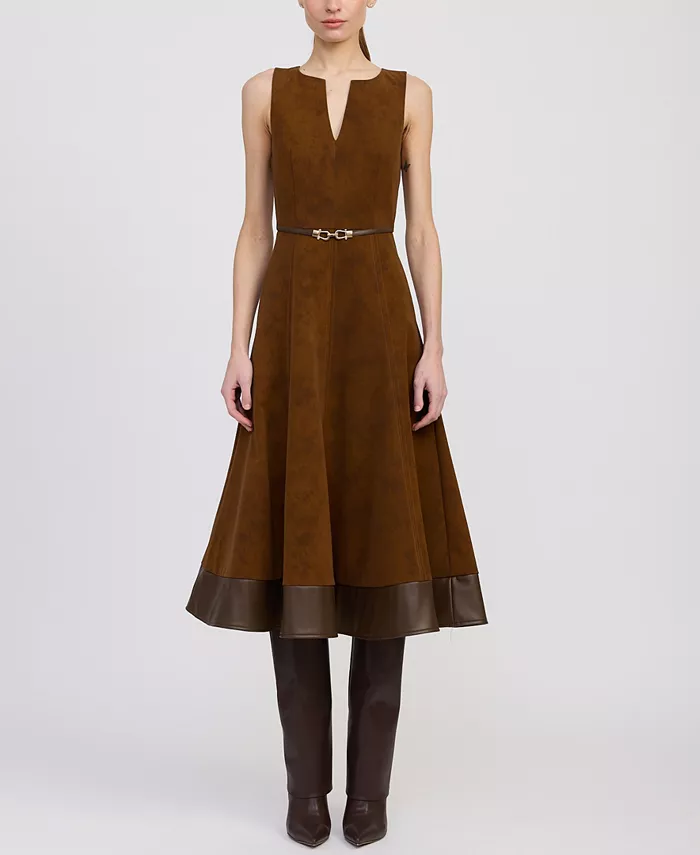 Plain Color Dress Mock Button V Neck Short Sleeve High Waisted A Line Mini Dress, Red