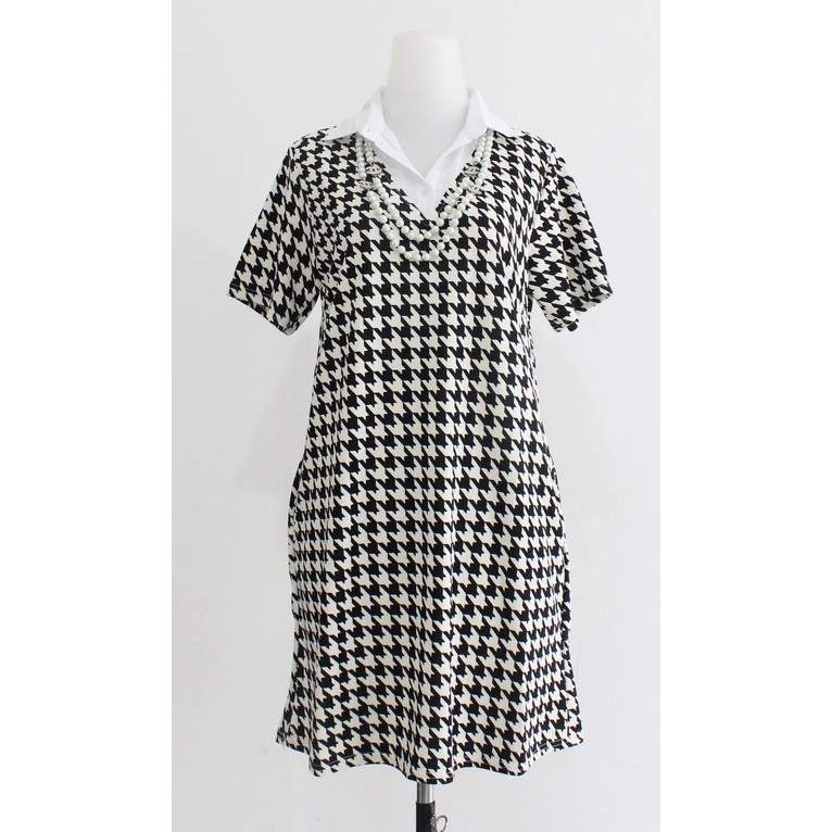 Dress cantik model simple dari bahan wedges. Bukaan kancing depan.