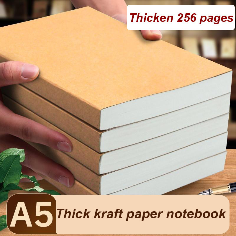 A5 Notebook 256 Pages 128 Sheets Line Blank Grid Inner Pages Eye Protection Kraft Paper Cover Small Notepad Book