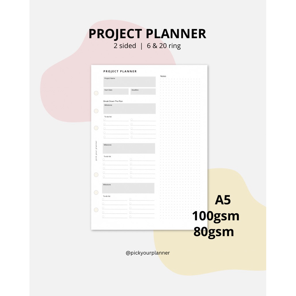 A5 Project Planner Refill Insert Binder