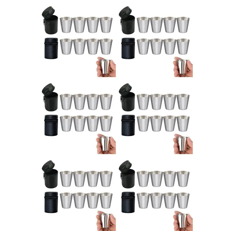 A59Z-48X Полированная 30 мл мини-стеклянная чашка из нержавеющей стали, бокалы для питья вина с кожаной сумкой-чехлом для дома, кухни, бара