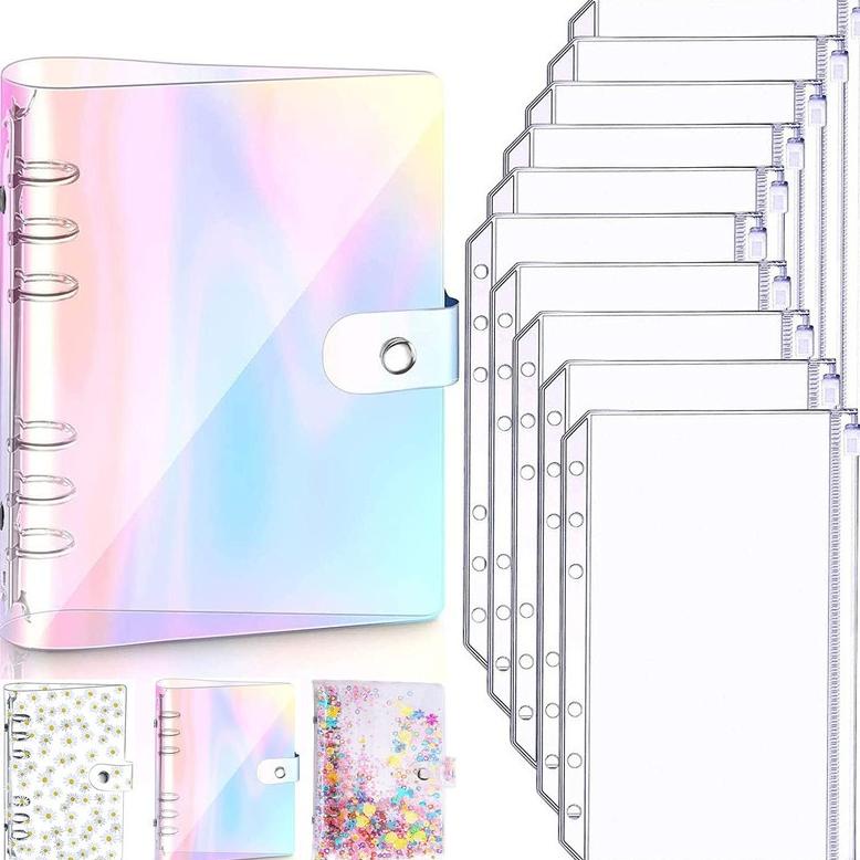 A6 CLEAR SOFT PVC NOTEBOOK BINDER COVER PLANNER 6-RING LOOSE-LEAF FOLDER CASH BUDGET ENVELOPE SYSTEM WITH10 PCS POCKETS TERLARISS...,,,,,