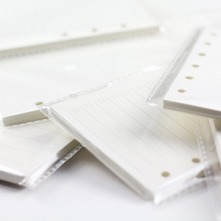 Kertas refill (loose leaf) ini diperuntukkan bagi pengguna binder 6 ring. Selain teksturnya yang halus, seri loose leaf ini memiliki temperatur warna yang lebih hangat (warm), memberikan warna putih gading yang lebih nyaman dipandang dibandingkan kertas biasa. Pilih dari enam format yang tersedia atau mix and match sesuai kebutuhan sehari-harimu.