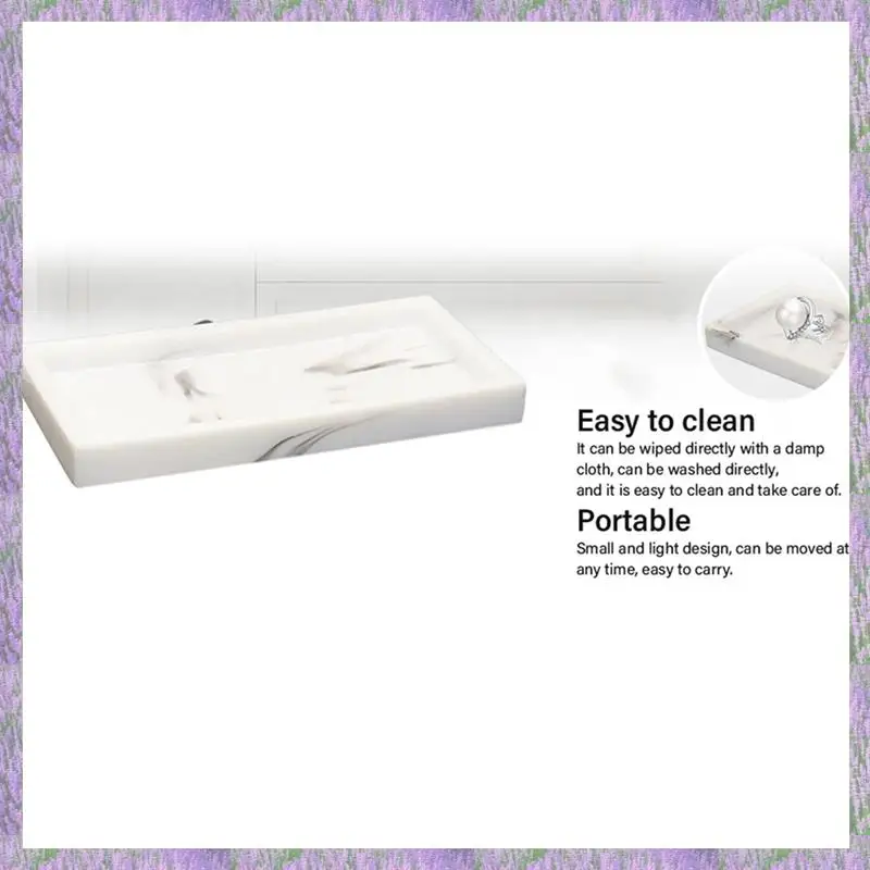 A63K-4X поднос из смолы с мраморным узором, нескользящая прямоугольная тарелка, столешница, лоток для хранения мыла и шампуня для ванной комнаты, домашний декор, белый