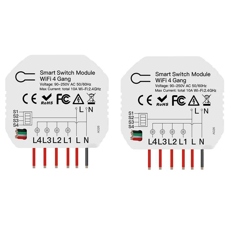 A68Z Dimmer Curtain Switch 2Pcs Smart Wifi 4 Way Switch Module Tuya Light Control Switch App Remote