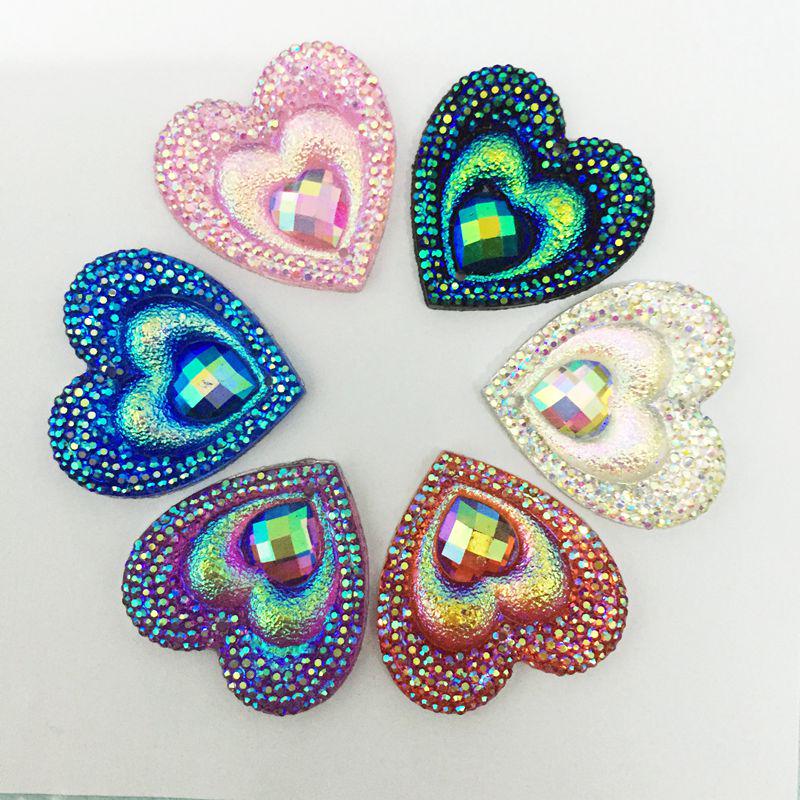 AB Смола в форме сердца со стразами с плоской задней частью для свадьбы «сделай сам», 2 отверстия, 10 шт., 30 мм 30MM белый