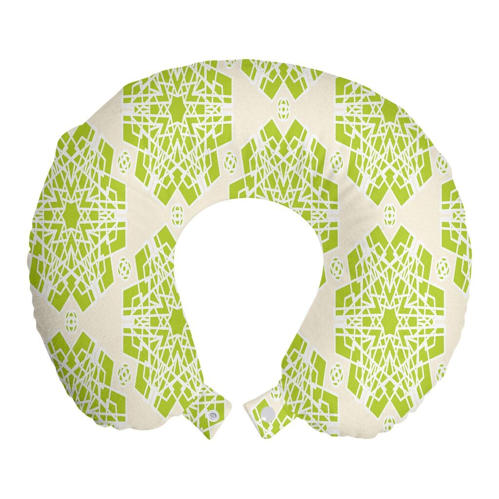 ABAKUHAUS Абстрактная дорожная подушка для шеи, цветы, полученные в результате естественного результата, дорожная вещь из пенопласта для самолета и автомобиля, 30x30 см, желто-зеленый и кремовый